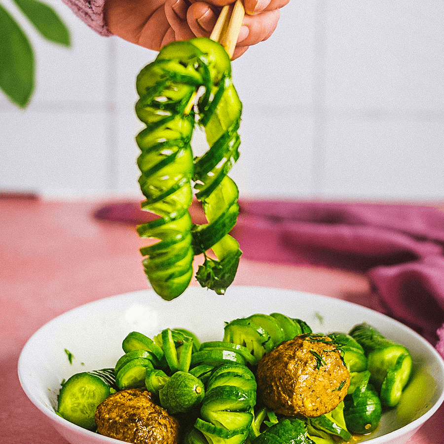 - 2 grote komkommers (of 12 kleine), geschild en in plakjes gesneden