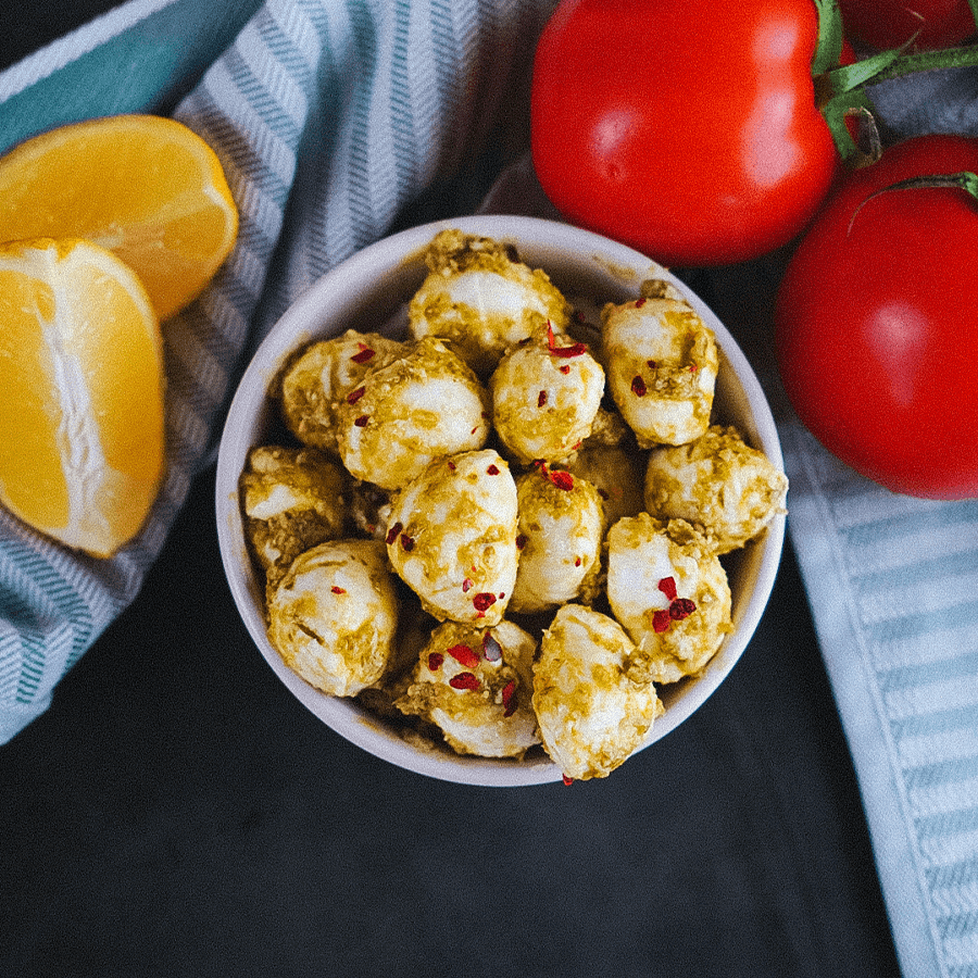 Romige mozzarella met kruidige pesto Mini mozzarella balletjes met pesto zijn dé snack voor liefhebbers van Italiaanse smaken. De zachte,