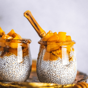 Geniet van een heerlijke en gezonde traktatie met Chia pudding met perziken. Dit eenvoudige recept combineert voedzaam chiazaad met ongezoete amandelmelk, erythritol (of stevia) en een vleugje vanille-extract voor een romige en zoete smaak. Voeg sappige perzikpartjes toe, gebakken in boter met een vleugje kaneel en een snufje zout, voor een fruitige en verrukkelijke topping. Probeer deze smaakvolle en voedzame chia pudding met perziken vandaag nog!