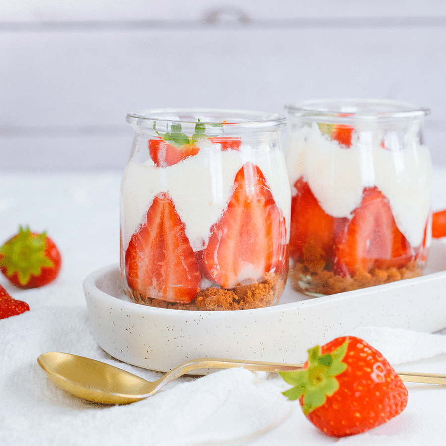 Een dessert zonder geraffineerde suiker hoeft écht niet minder lekker te zijn. Door te werken met een natuurlijke suikervervanger en een knapperige laag van keto koekjes of noten, krijgt dit toetje toch die klassieke textuur en smaak. De verse aardbeien zorgen voor een frisse tegenhanger, terwijl de munt het helemaal afmaakt. Een snelle en gezonde afsluiter die perfect past binnen een koolhydraatarme levensstijl.
