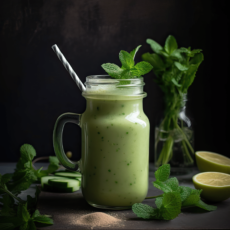 - Doe de courgette, limoensap en zest, kokosmelk, muntblaadjes, geraspte gember en eventuele zoetstof in een blender.