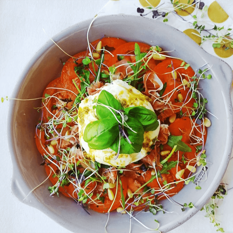 Probeer deze heerlijke tomaten carpaccio met burrata! Dit gerecht is rijk aan gezonde vetten en eiwitten en bevat slechts een minimale hoeveelheid koolhydraten, waardoor het perfect past binnen een keto-dieet. Bovendien is het gemakkelijk te bereiden en ziet het er prachtig uit op het bord.