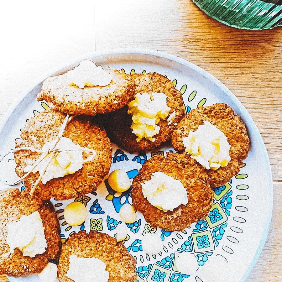 - Pluk stukjes van het deeg en maak er kleine balletjes van. Druk deze plat en leg ze op een met bakpapier beklede bakplaat.