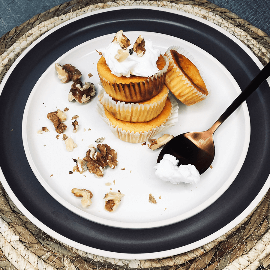 - Smelt de roomboter en meng het amandelmeel, de bakpoeder, de eieren, een beetje vanille extract en suiker, tot een gladde massa en verdeel dit over de cupcakevormpjes.