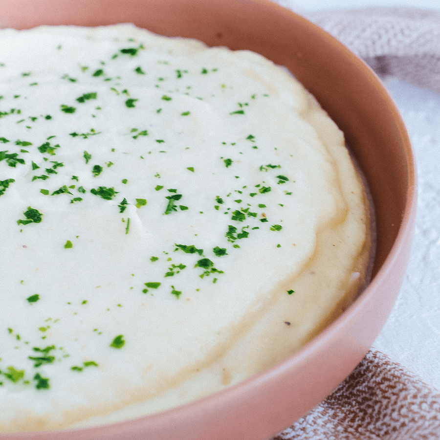 - Doe de bloemkool in een grote kom samen met de roomkaas, de roomboter en de volle room.