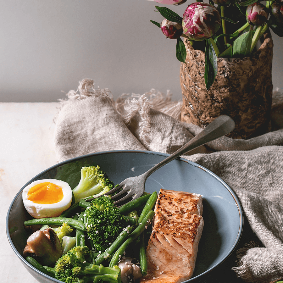• Serveer de zalm, groente en ei met sesamzaad en geniet!