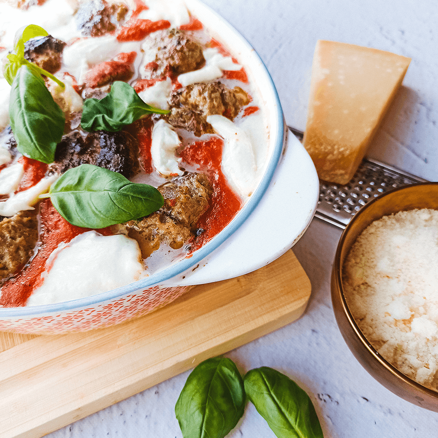 Koolhydraatarme kipballetjes in tomatensaus en mozzarella