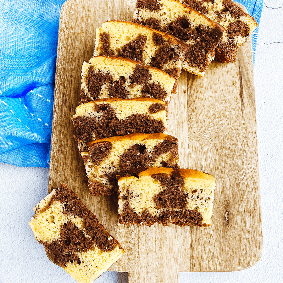 - Bekleed een bakvorm met bakpapier en giet eerst het vanillemengsel in de vorm. Verdeel vervolgens het chocolademengsel over de bakvorm. Maak nu met een lepel, vork of mes, een mooie twist vorm zodat het vanille- en chocolademengsel door elkaar heen loopt.