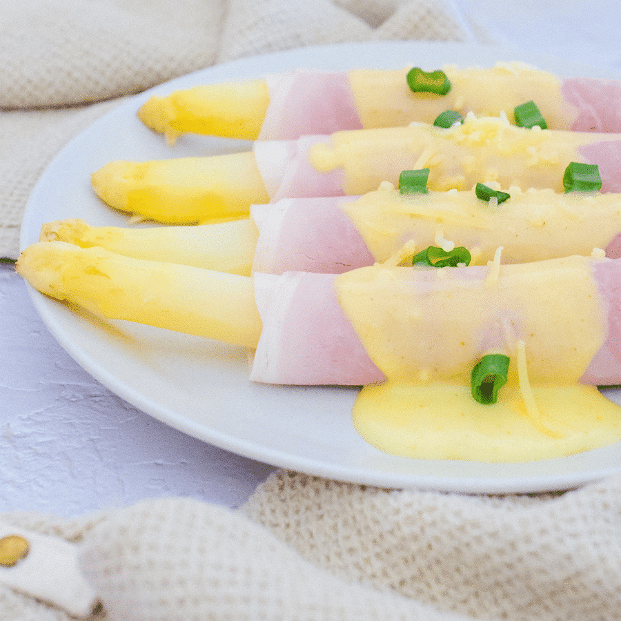 - Schil de asperges en kook ze gaar in gezouten water gedurende 15 tot 20 minuten.