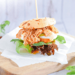 Heerlijk broodje pulled pork met zacht en smaakvol vlees en een zelfgemaakt koolhydraatarm broodje. Ideaal dus voor een zalige lunch