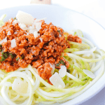 Een heerlijke pasta bolognese op een koolhydraatarme manier. Door de ongezonde pasta te vervangen door de courgetti heb je een