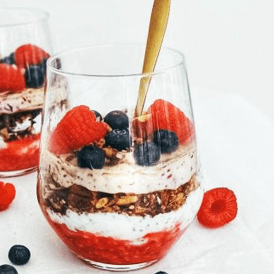 Dit recept voor een gezond en lekker ontbijt past perfect binnen een keto dieet. De combinatie van Griekse yoghurt en mascarpone zorgt voor een romige textuur en een goede dosis gezonde vetten. De handvol frambozen en bessen bieden niet alleen een heerlijke zoete smaak, maar ook antioxidanten en vitamines. De granola zorgt voor een knapperige bite en de theelepel erythritol geeft het geheel een subtiele zoetigheid zonder de koolhydraatinname te verhogen. Een heerlijke en voedzame start van de dag!
