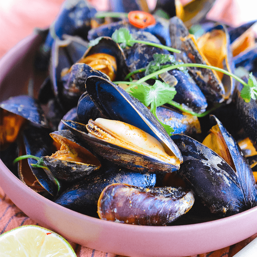 Mosselen worden vaak klassiek bereid met witte wijn en groenten, maar deze Thaise variant laat zien hoe veelzijdig ze zijn. Door ze te stoven in kokosmelk, rode curry en verse kruiden krijgen de mosselen een pittige en romige smaak die perfect past bij liefhebbers van de Aziatische keuken. Een leuke manier om van de vertrouwde mossel een compleet nieuw gerecht te maken – ideaal voor wie eens iets anders wil proberen.