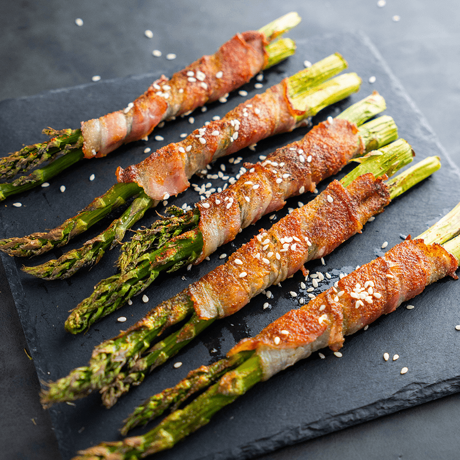 10plakjesontbijtspek of baconongeveer 2 plakjes per 2 asperges